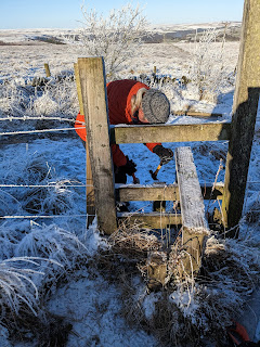 It was "a cold and frosty morning" as Ian S and Paul set out in below zero temperatures knowing that their plans for repairing a stile were dashed; the ground was rock hard! Instead we landed at the depot which turned out to be colder than outside! Fortunately it was sunny and temperatures were on the increase so with a couple of small jobs in hand and some survey work in mind we set off.