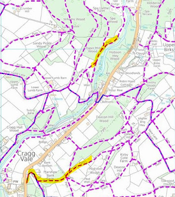 The Calderdale Way climbs uphill from Cragg Road towards Marshaw Bank. The first tasks were to cut back the laurel hedge and to reset a waymark post.